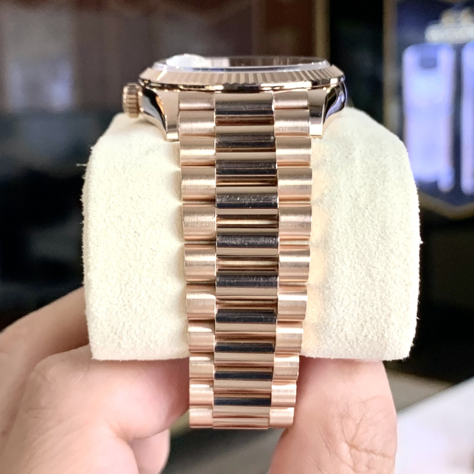 - Dây đeo: Dây President bằng vàng Everose 18k