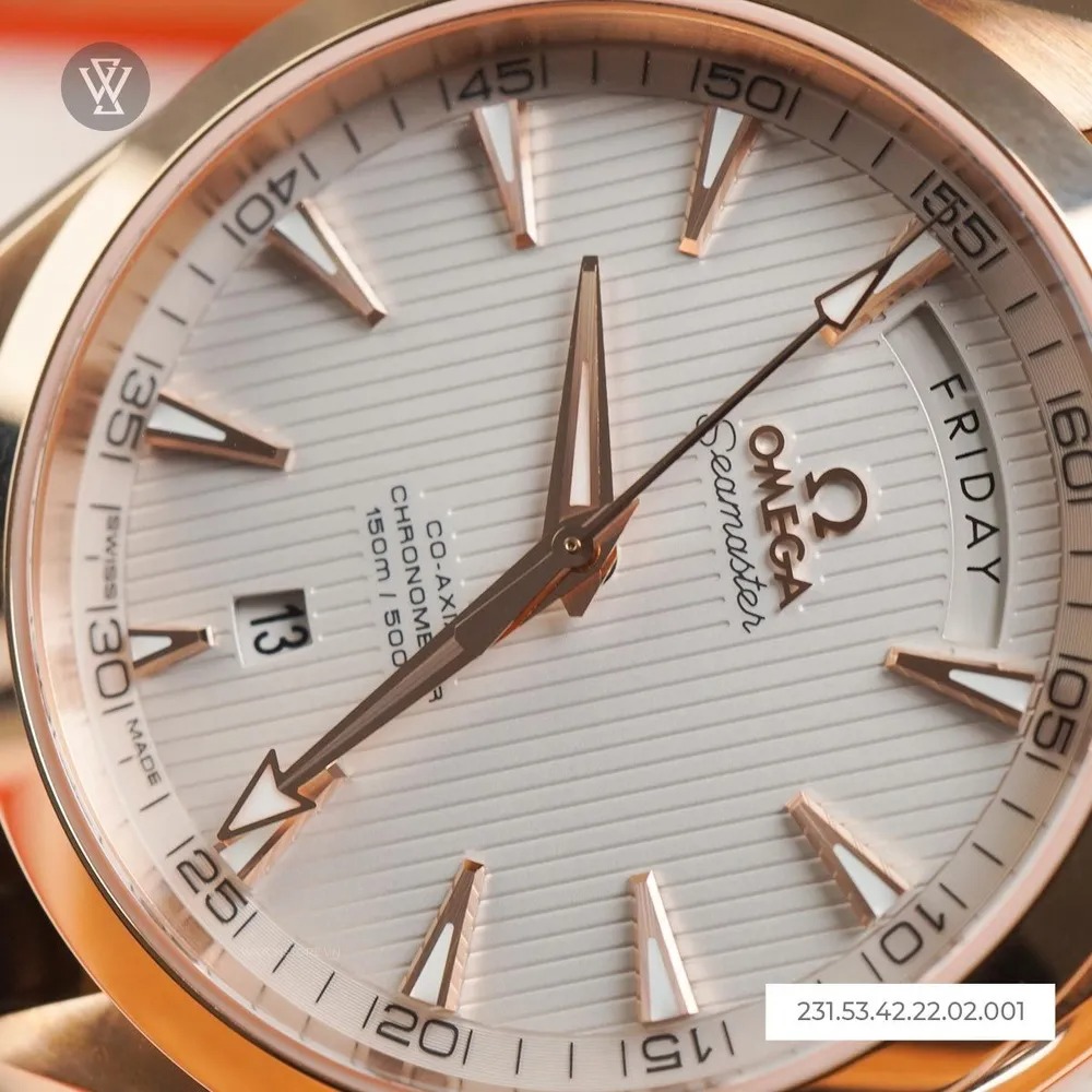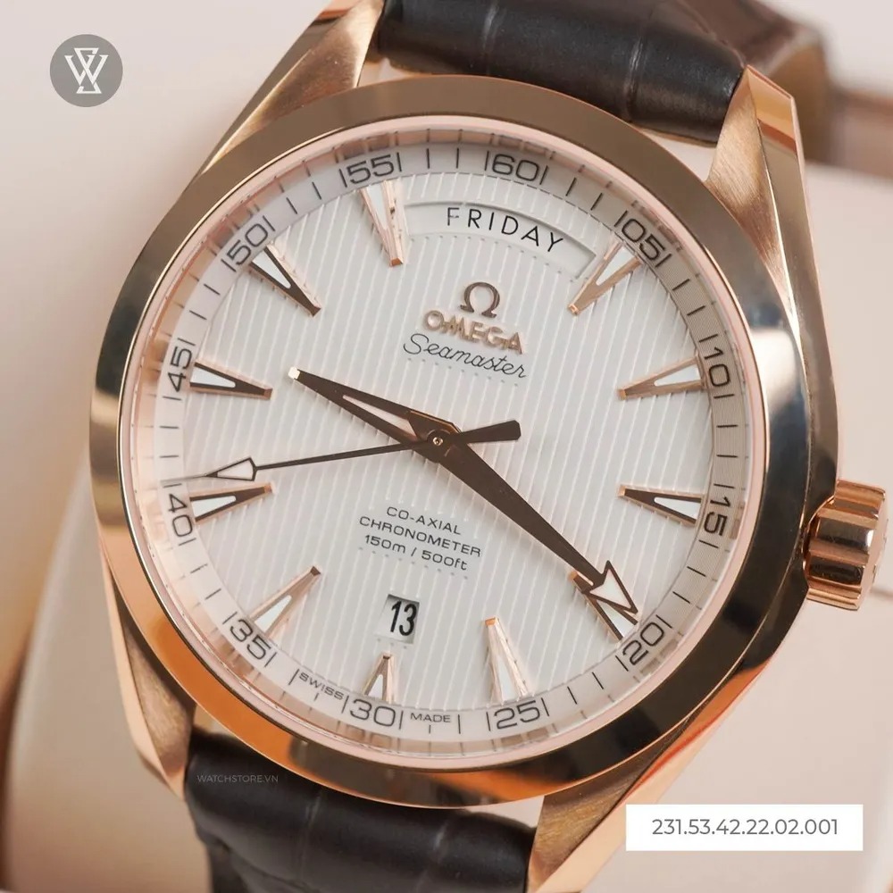 Omega Seamaster 231.53.42.22.02.001 là chiếc đồng hồ cao cấp thuộc dòng Seamaster Aqua Terra, được chế tác tinh xảo với bộ vỏ bằng vàng hồng 18K, tạo nên vẻ ngoài sang trọng và đẳng cấp. Mặt số bạc được thiết kế vân Teak độc đáo, lấy cảm hứng từ sàn gỗ trên du thuyền sang trọng. Bộ kim và cọc số cũng được làm từ vàng hồng 18K, tạo nên sự hài hòa hoàn hảo giữa chất liệu và thiết kế.